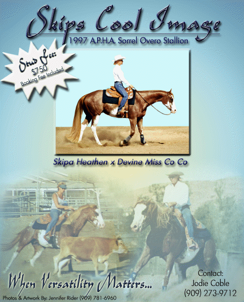 Jennifer's work has been seen in the American Quarter Horse Journal, American Paint Horse Journal, Quarter Horse Chronicle, Pacific Coast Magazine and the California Horsetrader!